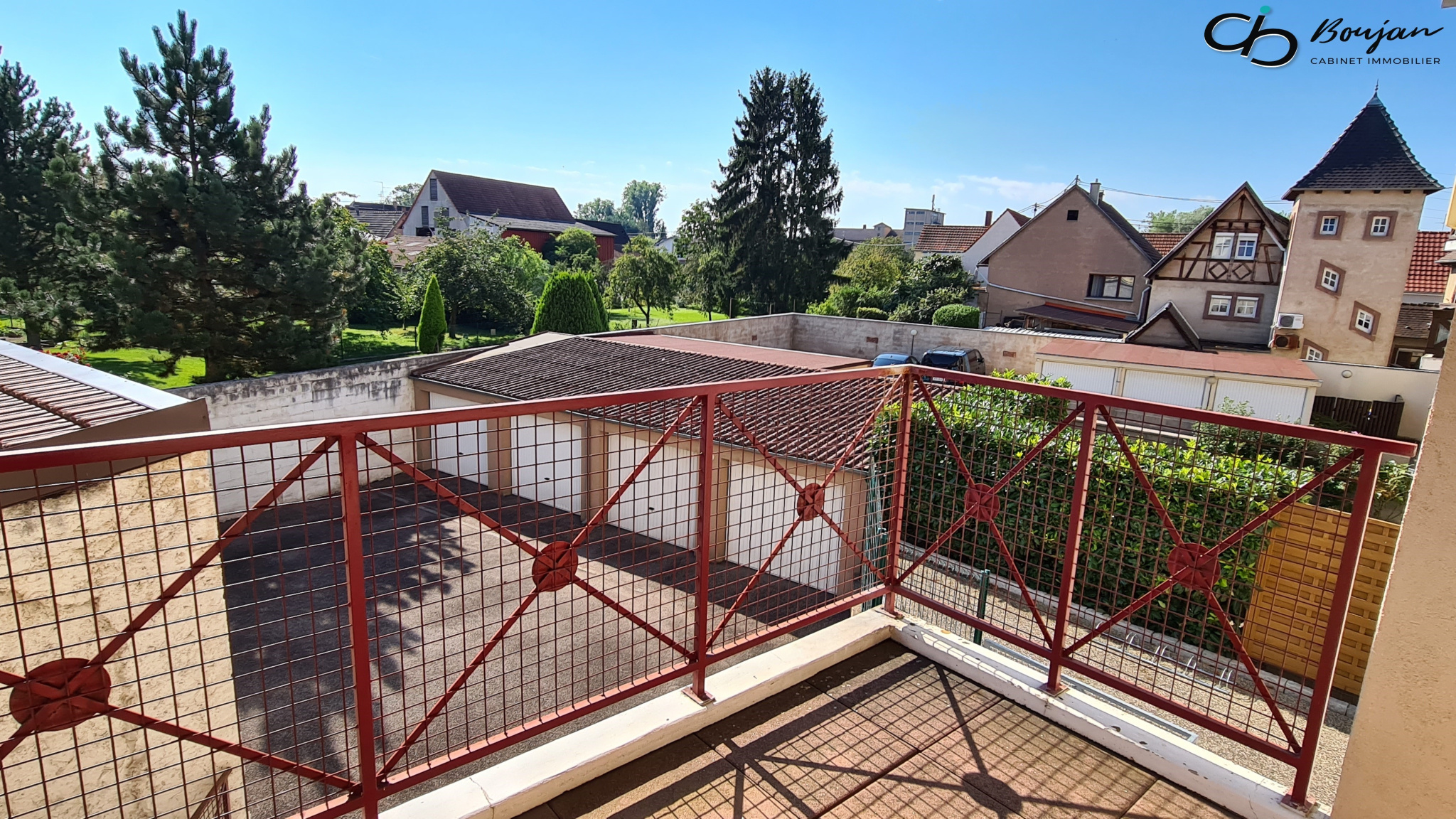 Au 1er étage d’une petite résidence, charmant 3 pièces situé à deux pas des commerces du centre-ville, et à moins de 500 m de la gare (15 minutes en direction de Strasbourg). L’appartement, d’une surface de 69 m², est idéalement orienté à l’arrière l’immeuble avec vue sur un terrain arboré.