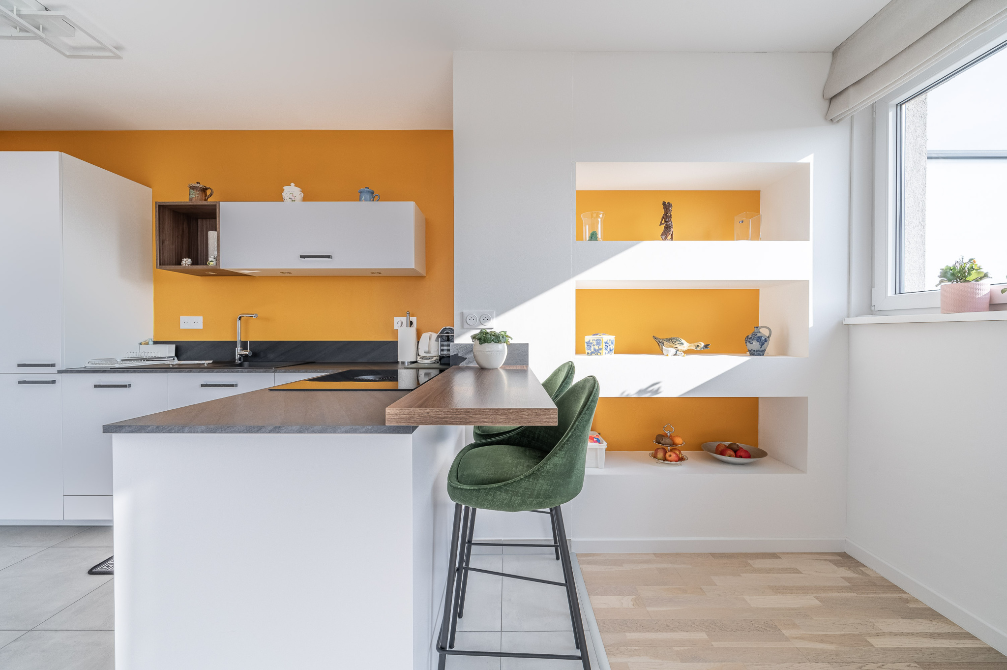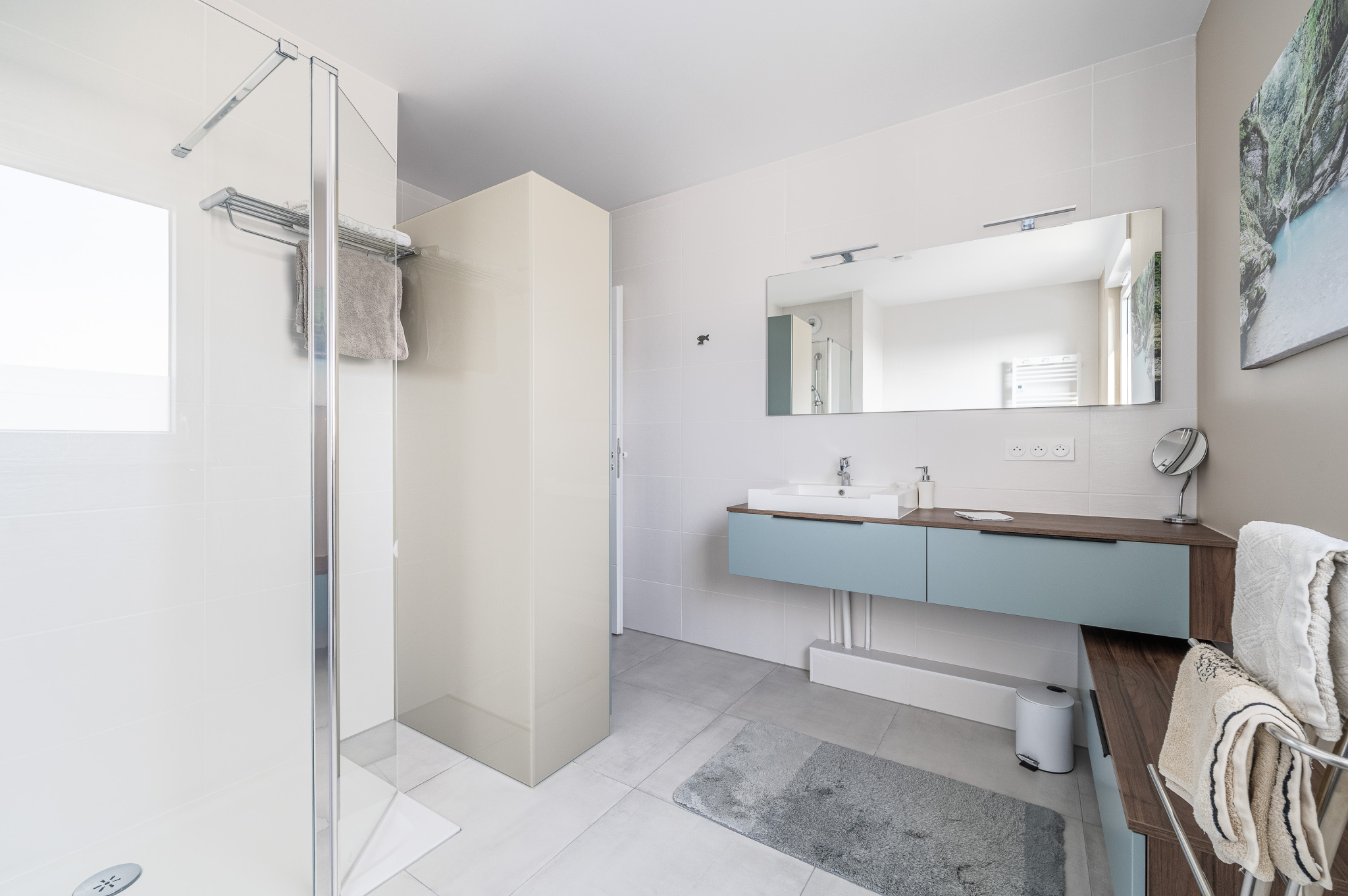 - une salle d'eau contemporaine, dotée d'une douche à l'italienne, de WC et d'un agencement sur-mesure,