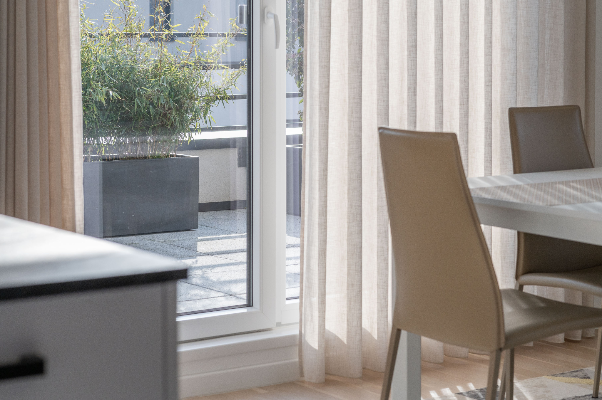 - un espace de vie chaleureux comprenant un séjour aménagé ainsi qu'une cuisine ouverte aux prestations haut de gamme,