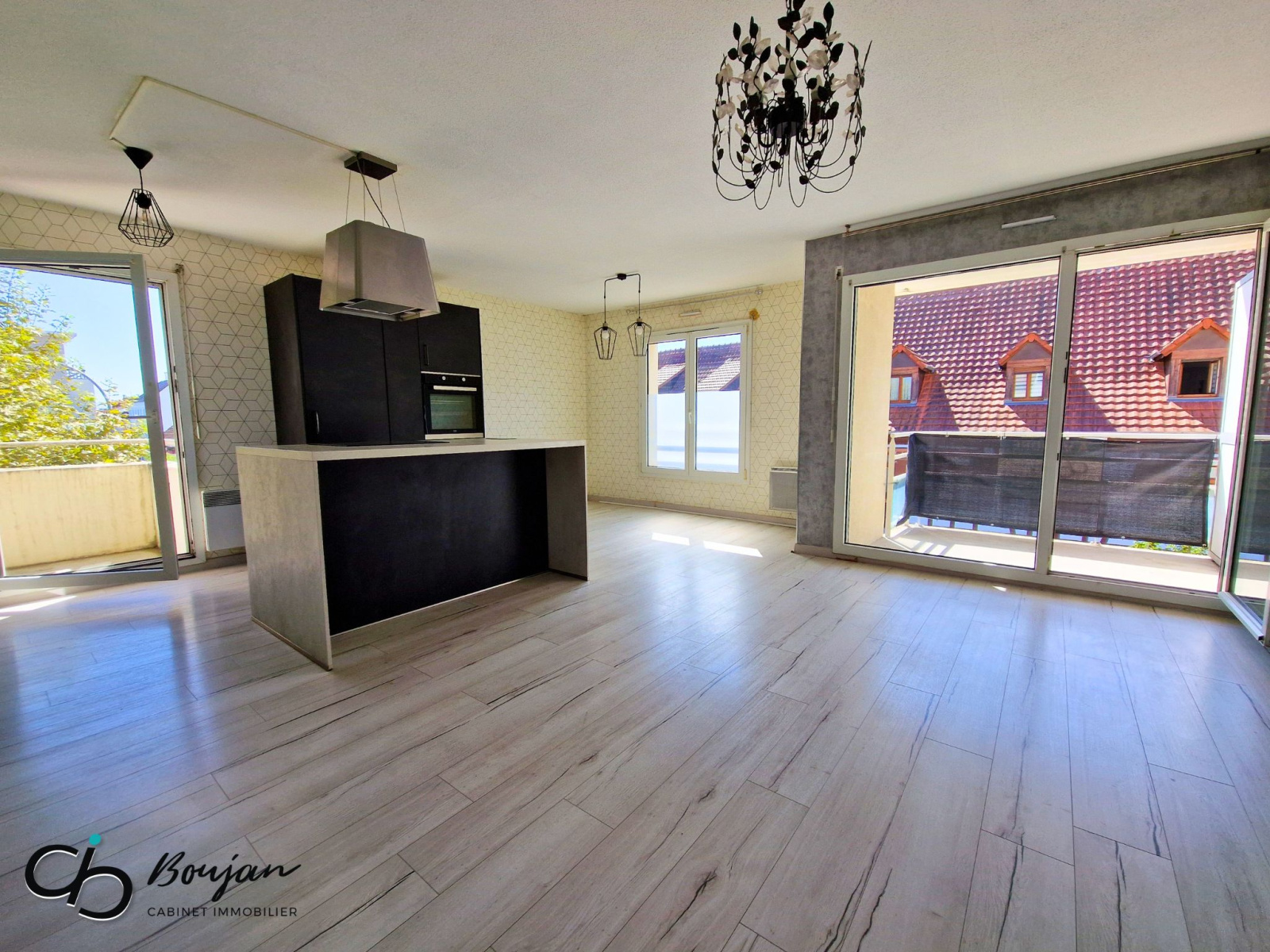 - une belle pièce à vivre de 32 m² comprenant un séjour ainsi qu’une cuisine ouverte équipée avec îlot central et tout le nécessaire en électroménager,
